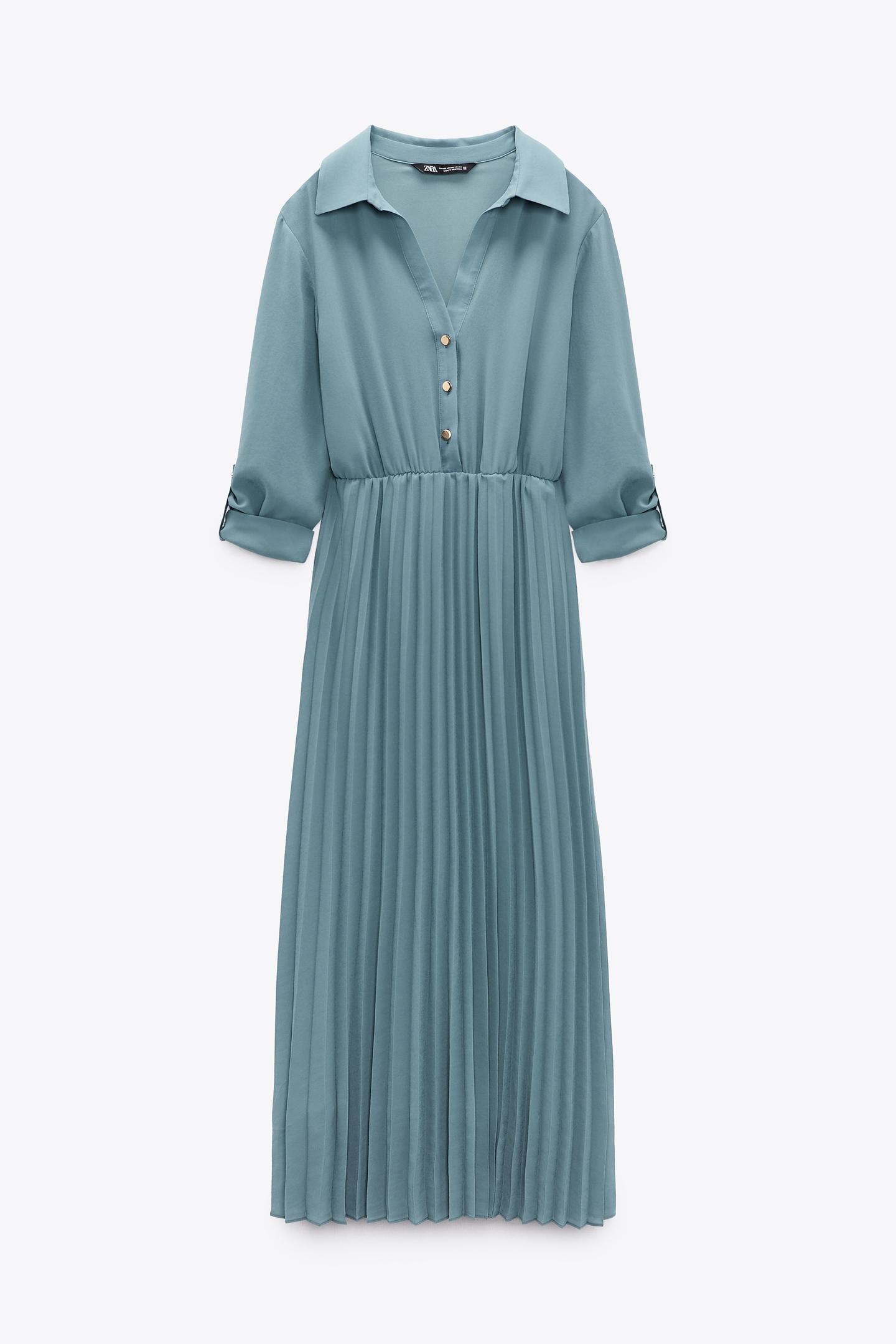 Ένα ανοιξιάτικο μίντι φόρεμα σε μπλε ραφ χρώμα, που θα ταιριάξει απόλυτα με ότι outfit εσύ επιλέξεις. Με μανίκι που φτάνει λίγο πιο κάτω από τον αγκώνα, ανοιχτό v με χρυσά κουμπιά και πλισέ φούστα προσδίσει ένα ιδιαίτερο στυλ στην όλη εμφάνιση. Έχει λάστιχο στη μέση ώστε να την τονιζει αλλά μπορείς και να προσθέσεις μια μαύρη ζώνη με μεταλλικές χρυσές λεπτομέρειες.